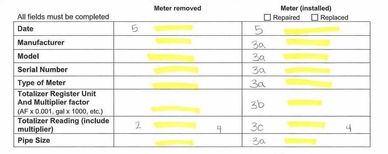 4. If the meter was repaired, the totalizer reading immediately before the reapair and the totalizer reading at the time the meter was reinstalled or the repair was completed on site.